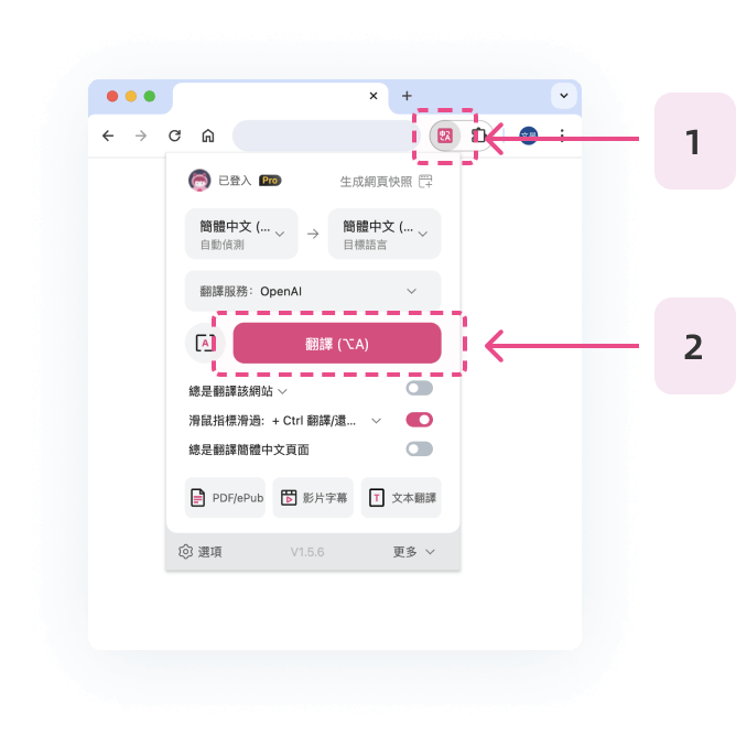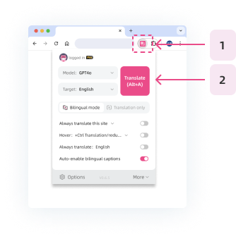 Why pin the icon? Most of the Translify features require clicking on the extension bar icon. Please refer to the example on the right and continue after pinning the plugin.
